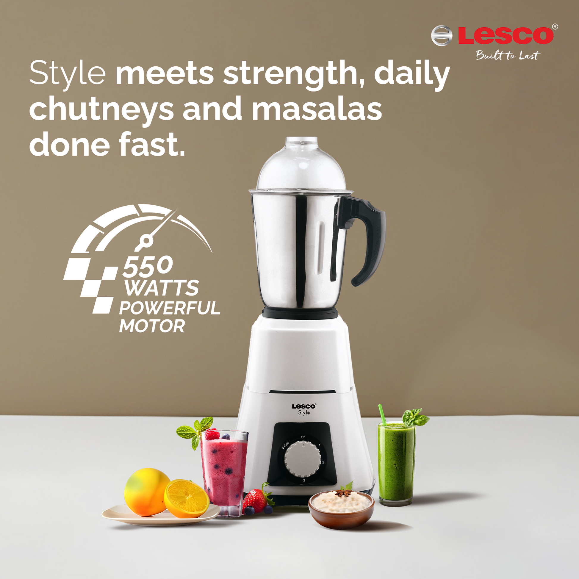 Stylo Mixer Grinder 550 Watts 3 Jars - White